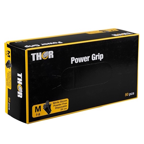 Abena THOR Power Grip nitrilinės vienkartinės pirštinės, labai stiprios, 6.5g, juodos (50vnt)