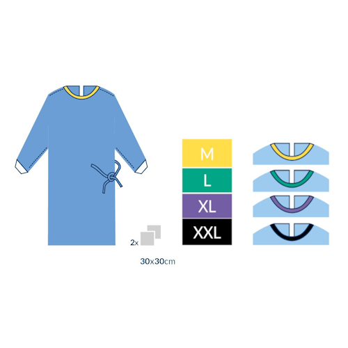 Medicininis neperšlampamas chalatas PP+PE, laminuotas, su rankogaliais, užrišamas nugaroje, mėlynas (1vnt)